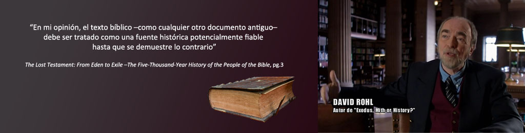 Con todo, muchos rechazan a estos “foráneos”, porque en sus tesis incluyen una integración de las fuentes bíblicas y seglares, algo que algunos, como el teólogo Thomas L. Thompson, consideran que "no sólo es dudoso sino totalmente ridículo". (Thomas L. Thompson. How myth became history. The Sunday Times, 13 October 2002.) El propio Rohl explicó su punto de vista sobre este asunto en The Lost Testament (2002): "¿Es el Antiguo Testamento historia o mito? La única manera de responder a esa pregunta es investigar los relatos bíblicos usando la evidencia arqueológica, combinado con un estudio de los textos antiguos de las civilizaciones que entran en juego en la crónica bíblica. Pero esto tiene que efectuarse con una mente abierta. En mi opinión, el texto bíblico -como cualquier otro documento antiguo- debe ser tratado como una fuente histórica potencialmente fiable hasta que se demuestre lo contrario” (The Lost Testament, pg.3) Rohl previamente dijo en A test of time (1995): "originalmente no establecí el debate sobre nuestra comprensión actual de la narración del Antiguo Testamento. Este se ha producido simplemente por la necesidad de explorar las ramificaciones de mi investigación del TIP [Tercer Período Intermedio egipcio]. No hago uso de un hacha religiosa para demoler. Soy simplemente un historiador en busca de una verdad histórica” (A Test of Time, pg.11).