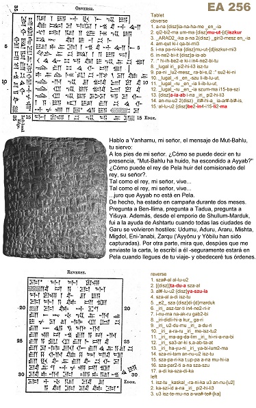 (*) Ayab: “El nombre Ayab de EA 256 (A-ya-ab) debe ser entendido como Ya-ab con el prefijo aleph, y el nombre se debe leer 'Yah[weh] es el Padre', una coincidencia exacta para el nombre de Joab [el general de David].” (JACF vol.6 pg.52)